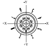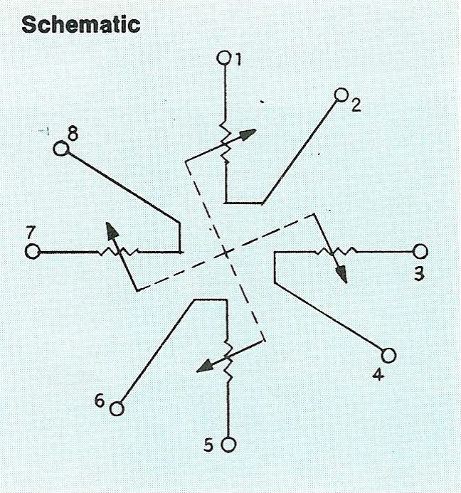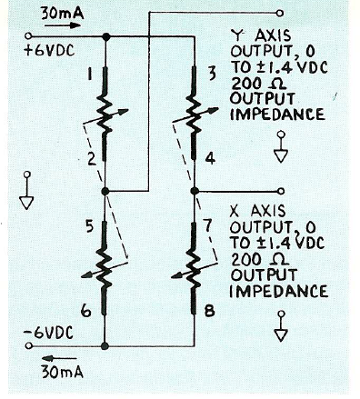 見下圖。應(yīng)變元件的電阻值是406±10%每額定功率0.1瓦特。編號1~8表示焊接端子,端子單元1~2、5~6之間構(gòu)成Y軸,端子單元3~4、7~8之間構(gòu)成X軸,