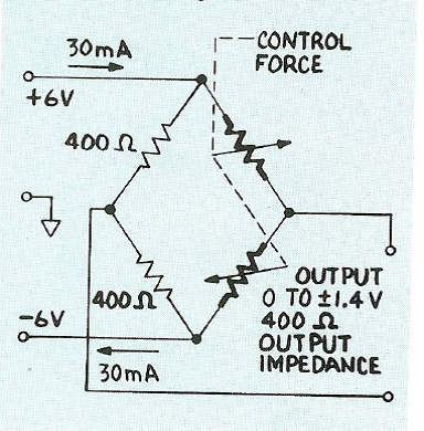 半橋電路原理測試微型二維力敏傳感裝置的線性以電壓顯示,以每次施加0.050英寸的力測試靈敏度和零位遲滯。